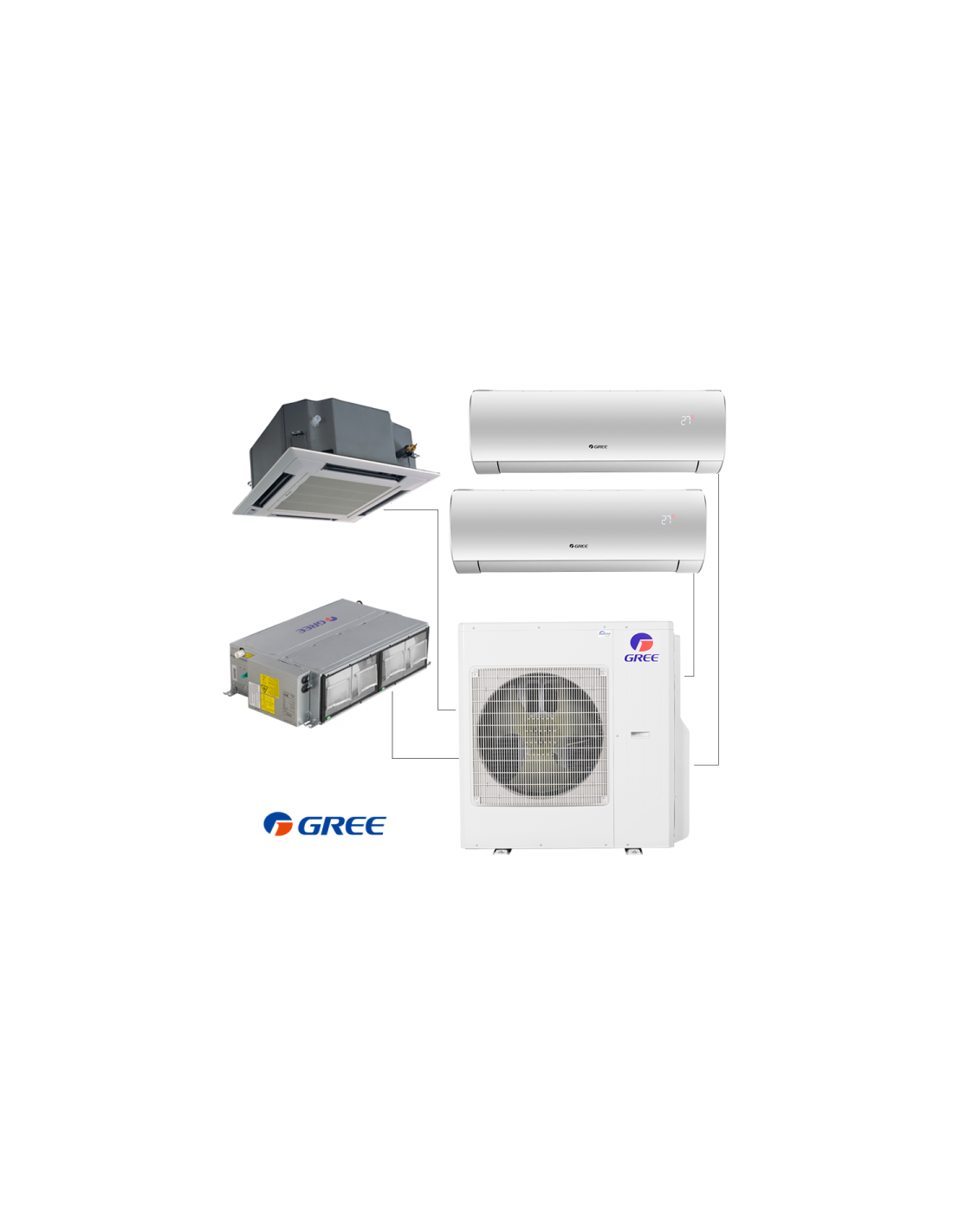 Мултисплит GWHD(36)NK6OO е климатична система, работеща с едно външно и с до четири вътрешни тела от климатици Gree, които могат да бъдат различни по вид. Предоставя възможност за гъвкав монтаж и индивидуален контрол на всяко вътрешно тяло.